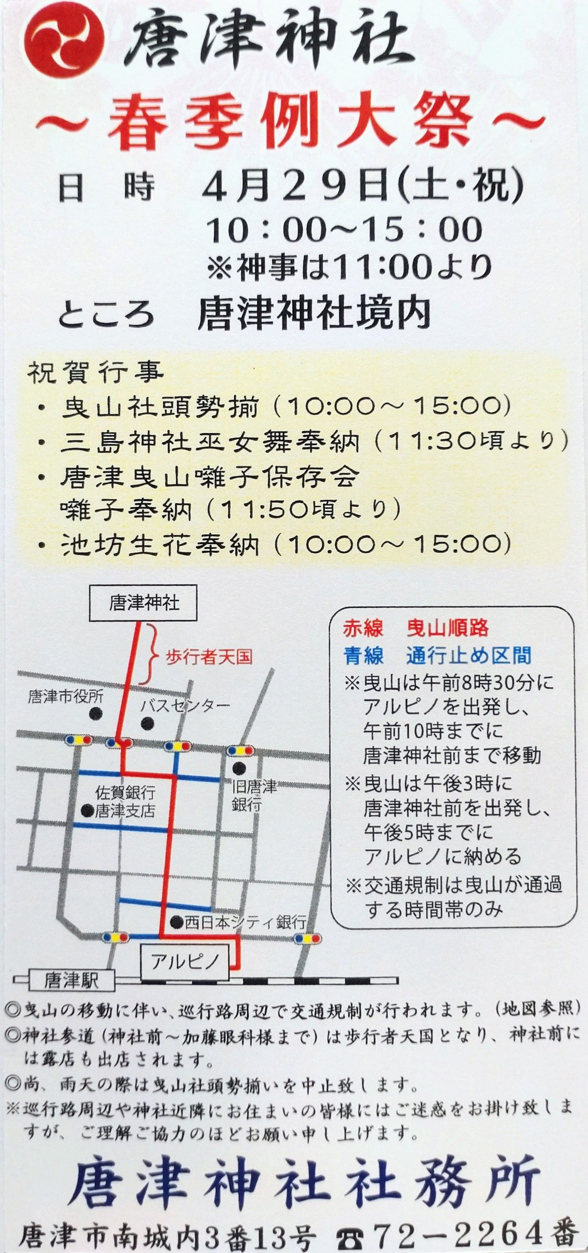 曳山社頭勢揃の中止に伴い、交通規制や歩行者天国の実施はありません。(当日好天になりましても曳山の移動はありません)